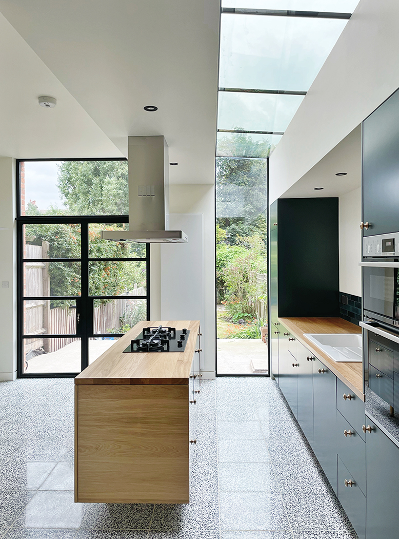 Refurbishment and extension of Arts & Crafts cottage, reconfigured with a modest extension, to open out the main living areas and connect the rear of the property with the garden