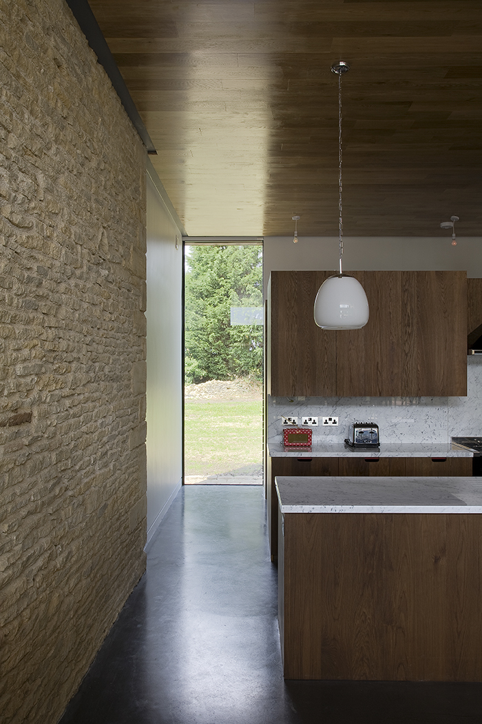 Refurbishment of a Victorian farmhouse and conversion of the original 17th century stone barn, the two buildings are linked by a newly formed modem extension to create a large family home. The open-plan kitchen and dining space, with large glazed openings, becomes the centre of the house.
