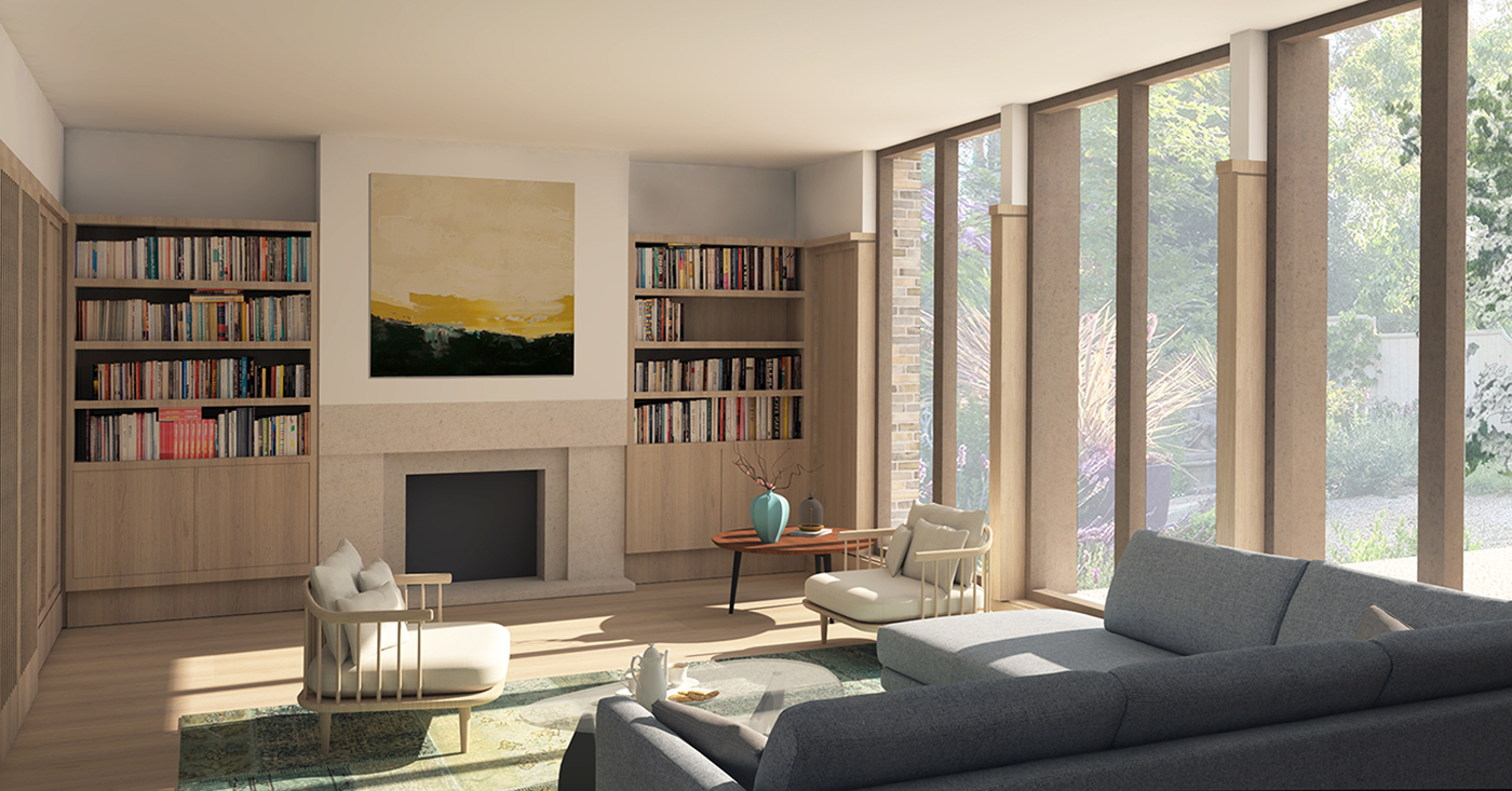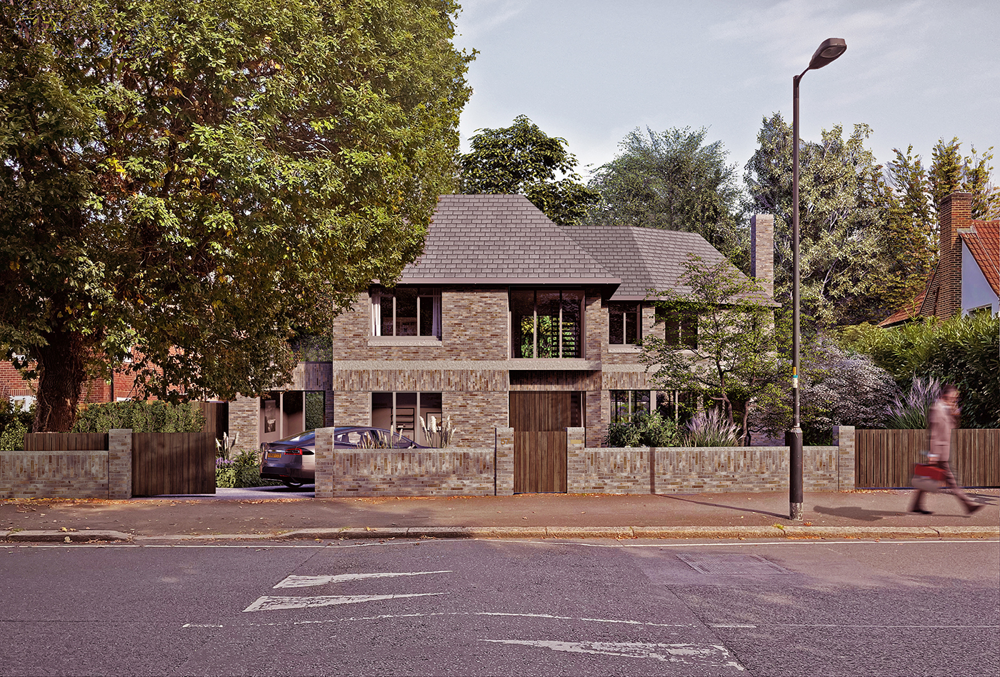 The proposed house is a new 5,000 sq ft home with basement. The carefully articulated massing, design and reorientation of the building is a rational response to the site constraints. ‘Arts and Crafts’ architectural features influenced the design and material palette to sensitively embed the new building within the local context.